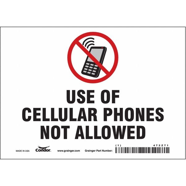Safety Sign, Horizontal Rectangle, Number of Printed Sides 1, English, Sign Legend Use Of Cellular Phones Not Allowed, Sign Legend Background Color White, Sign Legend Style Symbol and Text