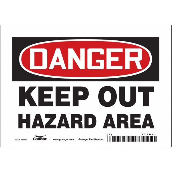 Safety Sign, Horizontal Rectangle, Number of Printed Sides 1, English, Sign Format Traditional OSHA, Sign Legend Keep Out Hazard Area, Sign Legend Background Color White, Sign Legend Style Text