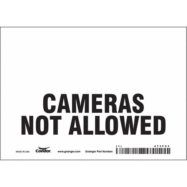 Safety Sign, Horizontal Rectangle, Number of Printed Sides 1, English, Sign Legend Cameras Not Allowed, Sign Legend Background Color White, Sign Legend Style Symbol and Text