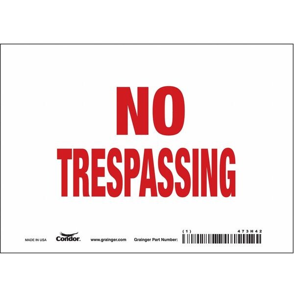 Safety Sign, Horizontal Rectangle, Number of Printed Sides 1, English, Sign Format Other Format, Sign Legend No Trespassing, Sign Legend Background Color White, Sign Legend Style Text