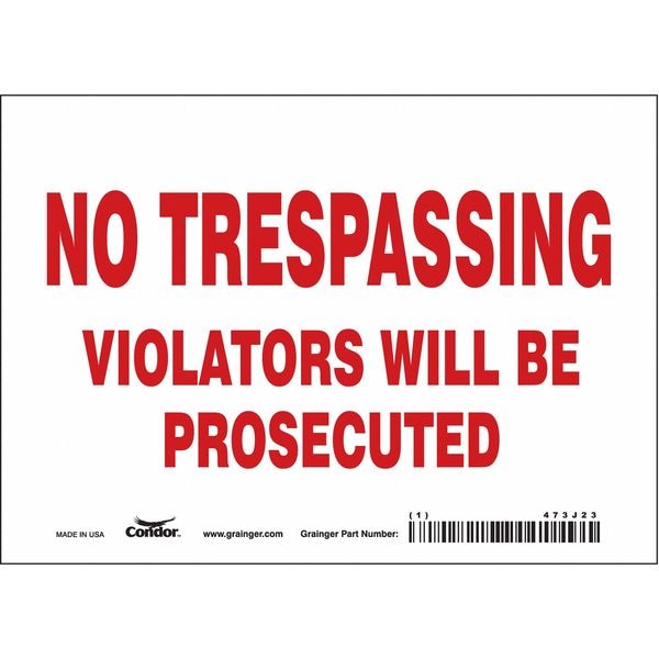 Safety Sign, Horizontal Rectangle, Number of Printed Sides 1, English, Sign Format Other Format, Sign Legend No Trespassing Violators Will Be Prosecuted, Sign Legend Background Color White, Sign Legend Style Text