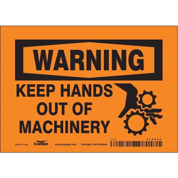 Safety Sign, Horizontal Rectangle, Number of Printed Sides 1, English, Sign Format Traditional OSHA, Sign Legend Keep Hands Out Of Machinery, Sign Legend Background Color Orange, Sign Legend Style Symbol and Text