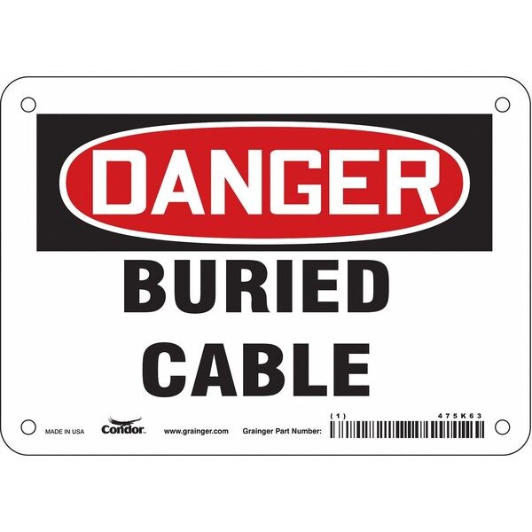 Safety Sign, Horizontal Rectangle, Number of Printed Sides 1, English, Sign Format Traditional OSHA, Sign Legend Buried Cable, Sign Legend Background Color White, Sign Legend Style Text