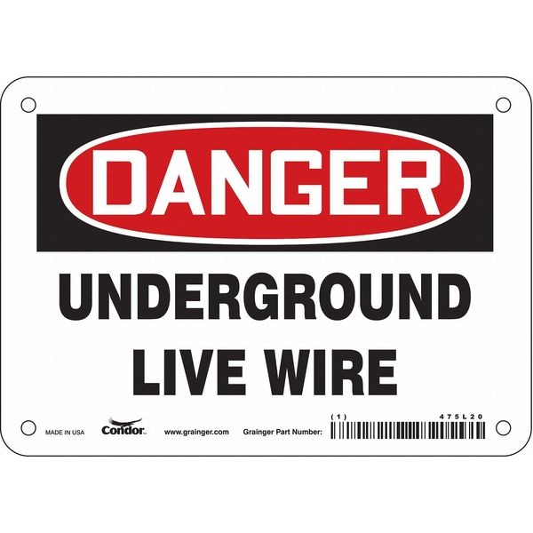 Safety Sign, Horizontal Rectangle, Number of Printed Sides 1, English, Sign Format Traditional OSHA, Sign Legend Underground Live Wire, Sign Legend Background Color White, Sign Legend Style Text