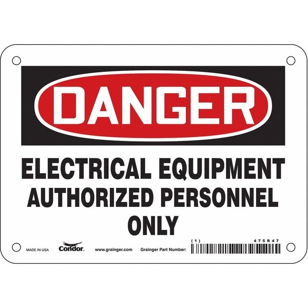 Safety Sign, Horizontal Rectangle, Number of Printed Sides 1, English, Sign Format Traditional OSHA, Sign Legend Electrical Equipment Authorized Personnel Only, Sign Legend Background Color White, Sign Legend Style Text