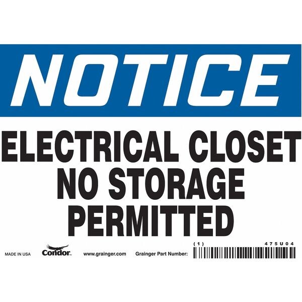 Safety Sign, Horizontal Rectangle, Number of Printed Sides 1, English, Sign Format Traditional OSHA, Sign Legend Electrical Closet No Storage Permitted, Sign Legend Background Color White, Sign Legend Style Text