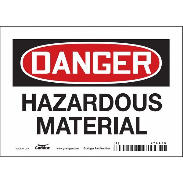 Safety Sign, Horizontal Rectangle, Number of Printed Sides 1, English, Sign Format Traditional OSHA, Sign Legend Hazardous Material, Sign Legend Background Color White, Sign Legend Style Text