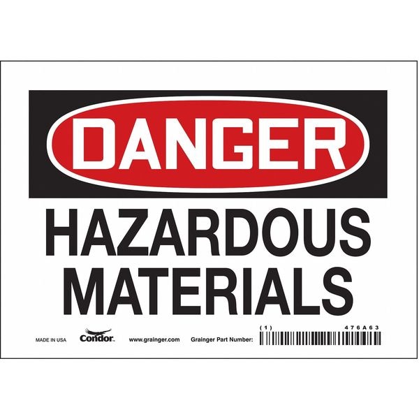 Safety Sign, Horizontal Rectangle, Number of Printed Sides 1, English, Sign Format Traditional OSHA, Sign Legend Hazardous Materials, Sign Legend Background Color White, Sign Legend Style Text