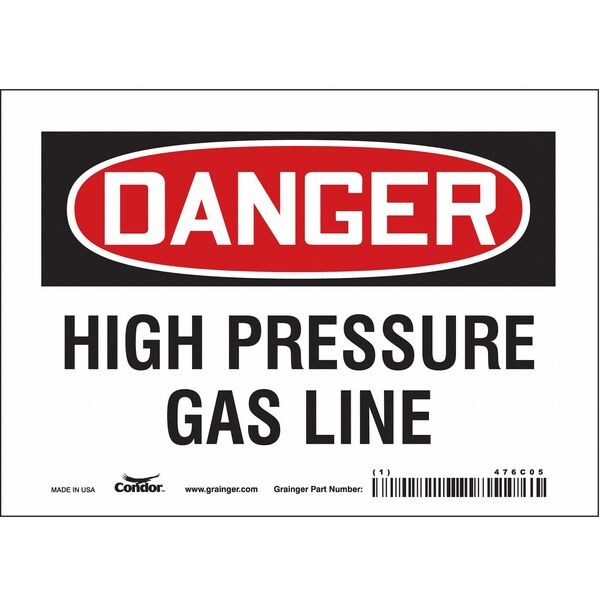 Safety Sign, Horizontal Rectangle, Number of Printed Sides 1, English, Sign Format Traditional OSHA, Sign Legend High Pressure Gas Line, Sign Legend Background Color White, Sign Legend Style Text