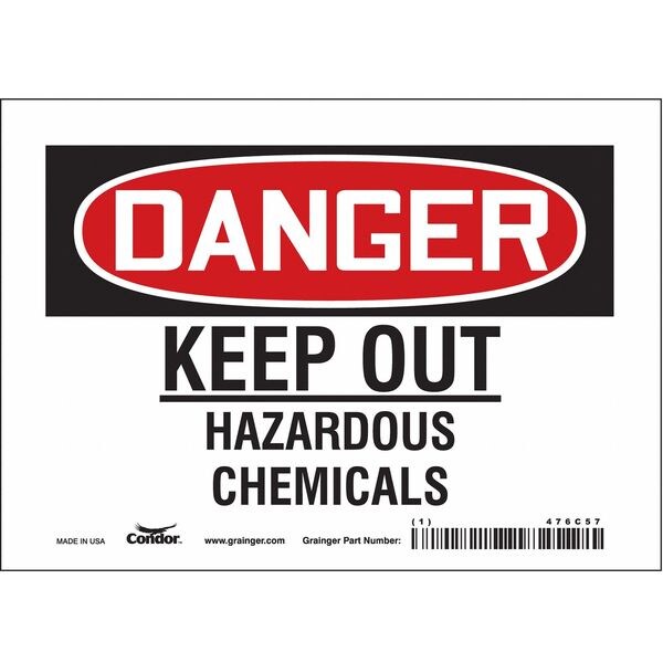 Safety Sign, Horizontal Rectangle, Number of Printed Sides 1, English, Sign Format Traditional OSHA, Sign Legend Keep Out Hazardous Chemicals, Sign Legend Background Color White, Sign Legend Style Text
