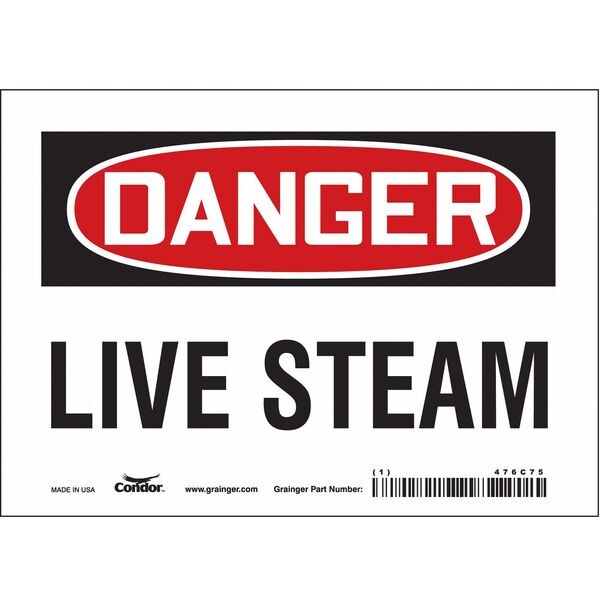 Safety Sign, Horizontal Rectangle, Number of Printed Sides 1, English, Sign Format Traditional OSHA, Sign Legend Live Steam, Sign Legend Background Color White, Sign Legend Style Text