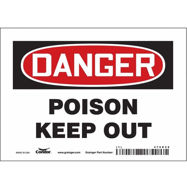 Safety Sign, Horizontal Rectangle, Number of Printed Sides 1, English, Sign Format Traditional OSHA, Sign Legend Poison Keep Out, Sign Legend Background Color White, Sign Legend Style Text