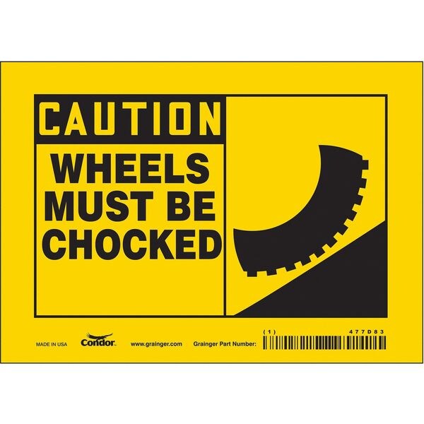 Safety Sign, Horizontal Rectangle, Number of Printed Sides 1, English, Sign Format Traditional OSHA, Sign Legend Wheels Must Be Chocked, Sign Legend Background Color Yellow, Sign Legend Style Symbol and Text