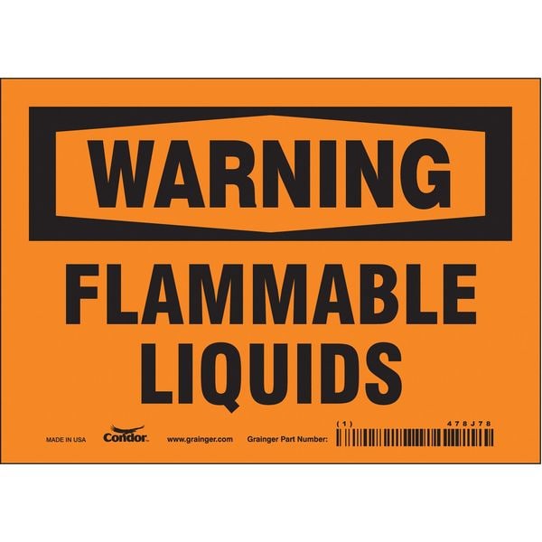 Safety Sign, Horizontal Rectangle, Number of Printed Sides 1, English, Sign Format Traditional OSHA, Sign Legend Flammable Liquids, Sign Legend Background Color Orange, Sign Legend Style Text