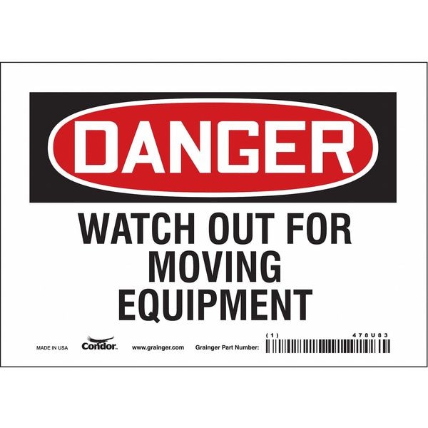 Safety Sign, Horizontal Rectangle, Number of Printed Sides 1, English, Sign Format Traditional OSHA, Sign Legend Watch Out For Moving Equipment, Sign Legend Background Color White, Sign Legend Style Text