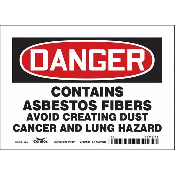 Safety Sign, Horizontal Rectangle, Number of Printed Sides 1, English, Sign Format Traditional OSHA, Sign Legend Contains Asbestos Fibers Avoid Creating Dust Cancer And Lung Hazard, Sign Legend Background Color White, Sign Legend Style Text