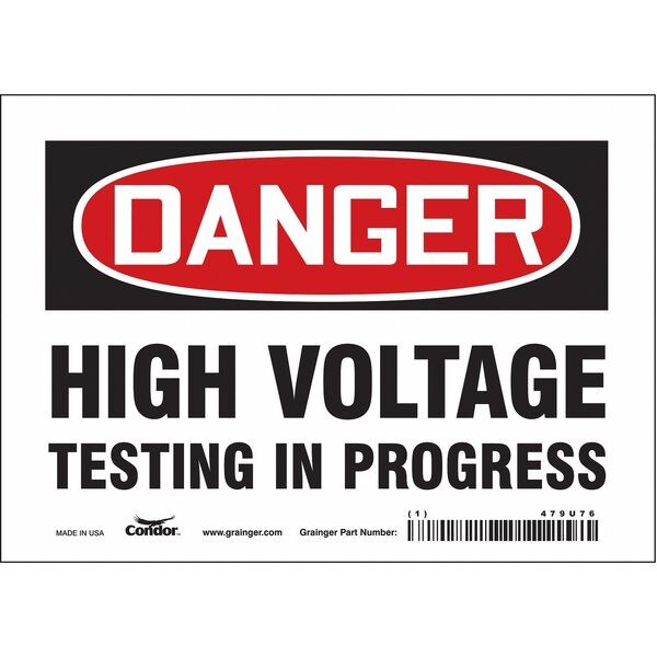Safety Sign, Horizontal Rectangle, Number of Printed Sides 1, English, Sign Format Traditional OSHA, Sign Legend High Voltage Testing In Progress, Sign Legend Background Color White, Sign Legend Style Text