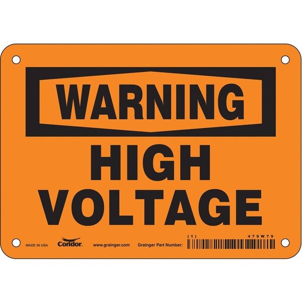 Safety Sign, Horizontal Rectangle, Number of Printed Sides 1, English, Sign Format Traditional OSHA, Sign Legend High Voltage, Sign Legend Background Color Orange, Sign Legend Style Text