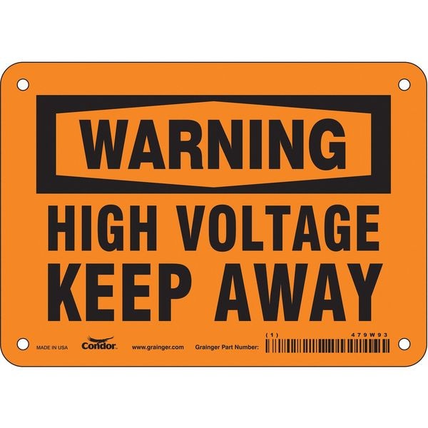 Safety Sign, Horizontal Rectangle, Number of Printed Sides 1, English, Sign Format Traditional OSHA, Sign Legend High Voltage Keep Away, Sign Legend Background Color Orange, Sign Legend Style Text