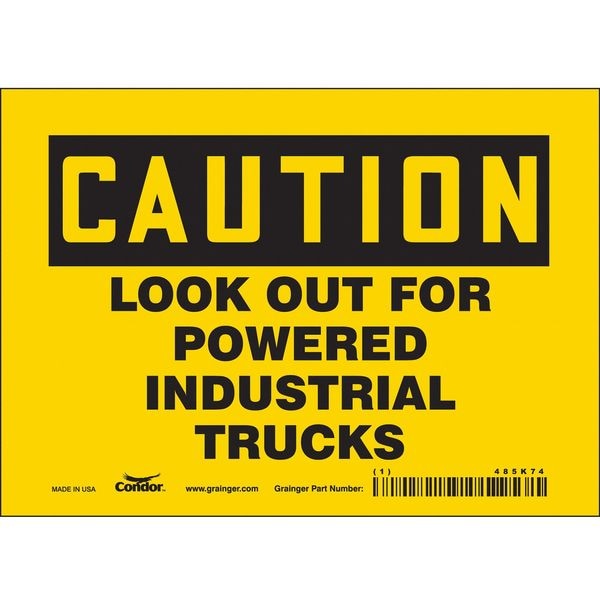 Safety Sign, Horizontal Rectangle, Number of Printed Sides 1, English, Sign Format Traditional OSHA, Sign Legend Look Out For Powered Industrial Trucks, Sign Legend Background Color Yellow, Sign Legend Style Text