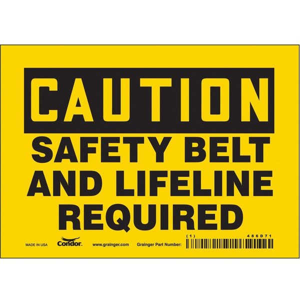 Safety Sign, Horizontal Rectangle, Number of Printed Sides 1, English, Sign Format Traditional OSHA, Sign Legend Safety Belt And A Lifeline Required, Sign Legend Background Color Yellow, Sign Legend Style Text