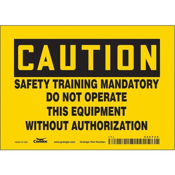 Safety Sign, Horizontal Rectangle, Number of Printed Sides 1, English, Sign Format Traditional OSHA, Sign Legend Safety Training Mandatory Do Not Operate This Equipment Without Authorization, Sign Legend Background Color Yellow, Sign Legend Style Text