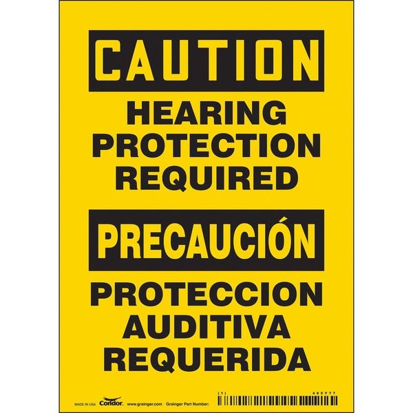 Safety Sign, Vertical Rectangle, Number of Printed Sides 1, English, Spanish, Sign Format Traditional OSHA, Sign Legend Hearing Protection Required/Proteccion Auditiva Requerida, Sign Legend Background Color Yellow, Sign Legend Style Text