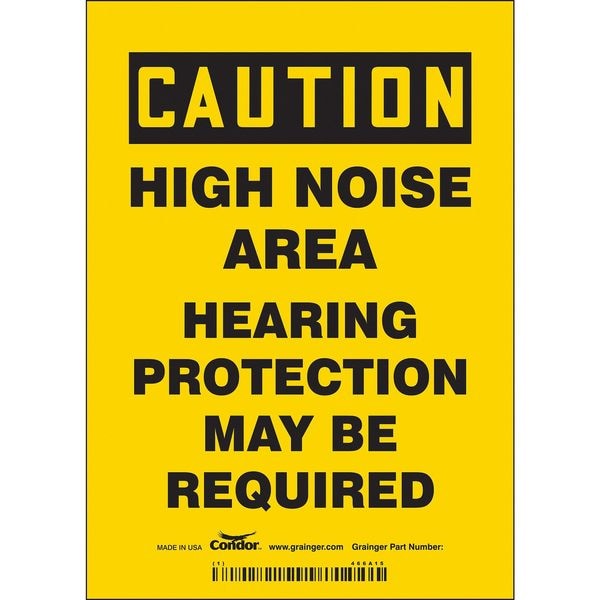 Safety Sign, Vertical Rectangle, Number of Printed Sides 1, English, Sign Format Traditional OSHA, Sign Legend High Noise Area Hearing Protection May Be Required, Sign Legend Background Color Yellow, Sign Legend Style Text