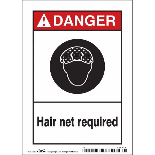 Safety Sign, Vertical Rectangle, Number of Printed Sides 1, English, Sign Format ANSI/OSHA Format, Sign Legend Hair Net Required, Sign Legend Background Color White, Sign Legend Style Symbol and Text