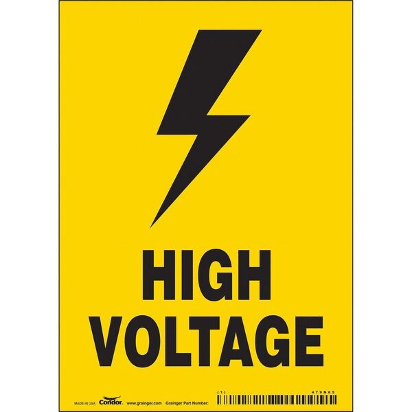 Safety Sign, Vertical Rectangle, Number of Printed Sides 1, English, Sign Format Other Format, Sign Legend High Voltage, Sign Legend Background Color Yellow, Sign Legend Style Symbol and Text