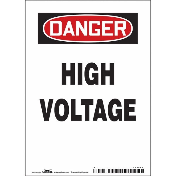 Safety Sign, Vertical Rectangle, Number of Printed Sides 1, English, Sign Format Traditional OSHA, Sign Legend High Voltage, Sign Legend Background Color White, Sign Legend Style Text