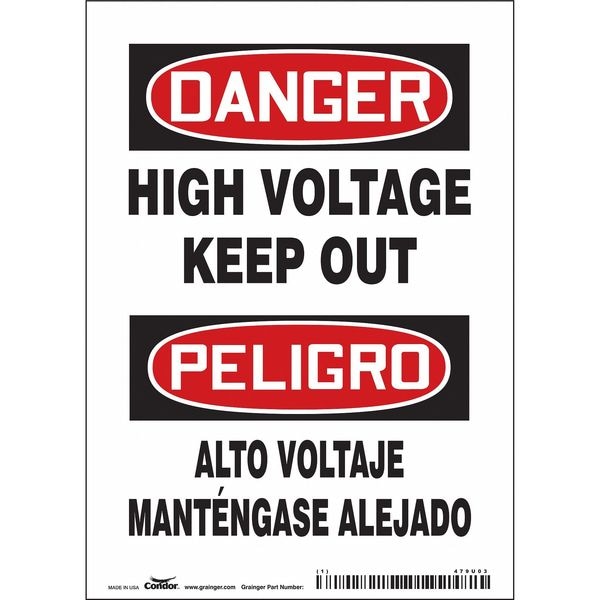 Safety Sign, Vertical Rectangle, Number of Printed Sides 1, English, Spanish, Sign Format Traditional OSHA, Sign Legend High Voltage Keep Out/Alto Voltaje Mantengase Afuera, Sign Legend Background Color White, Sign Legend Style Text