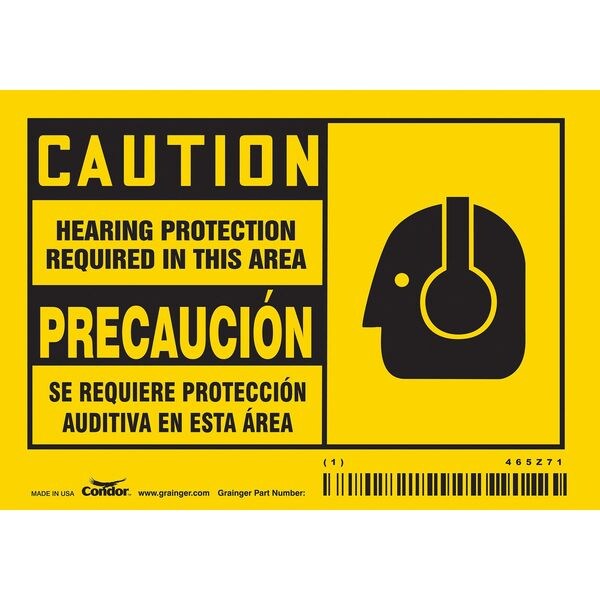 Safety Sign, Horizontal Rectangle, Number of Printed Sides 1, English, Spanish, Sign Format Traditional OSHA, Sign Legend Hearing Protection Required In This Area/Se Requiere Proteccion Del Oido En Esta Area, Sign Legend Background Color Yellow, Sign Legend Style Symbol and Text, Package Quantity 5