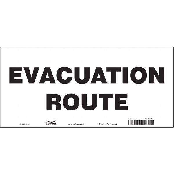 Safety Sign, Vertical Rectangle, Number of Printed Sides 1, English, Sign Format Other Format, Sign Legend Evacuation Route, Sign Legend Background Color White, Sign Legend Style Text