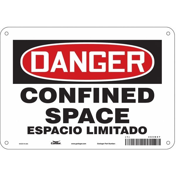 Safety Sign, Vertical Rectangle, Number of Printed Sides 1, English, Spanish, Sign Format Traditional OSHA, Sign Legend Confined Space/ Espacio Limitado, Sign Legend Background Color White, Sign Legend Style Text