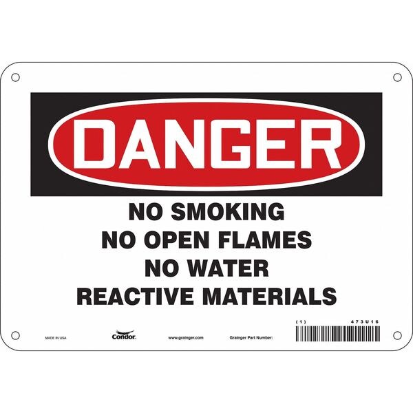 Safety Sign, Vertical Rectangle, Number of Printed Sides 1, English, Sign Format Traditional OSHA, Sign Legend No Smoking No Open Flames No Water Reactive Materials, Sign Legend Background Color White, Sign Legend Style Text