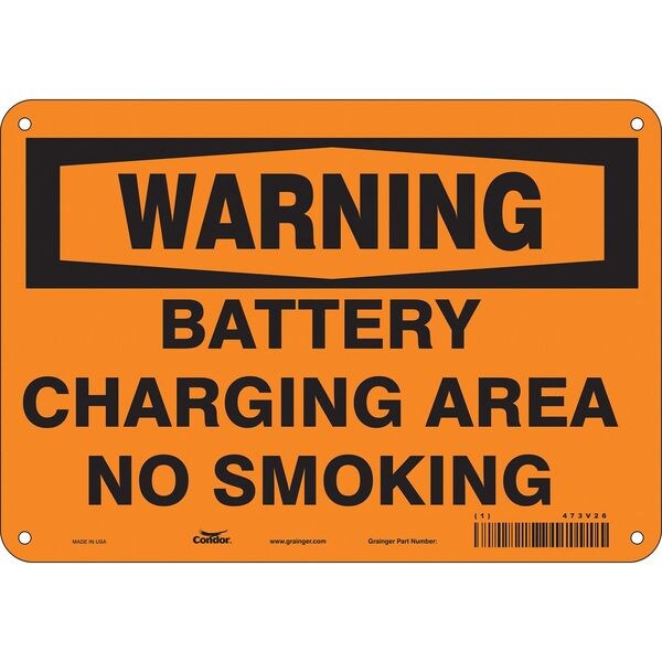 Safety Sign, Vertical Rectangle, Number of Printed Sides 1, English, Sign Format Traditional OSHA, Sign Legend Battery Charging Area No Smoking, Sign Legend Background Color Orange, Sign Legend Style Text