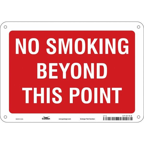 Safety Sign, Vertical Rectangle, Number of Printed Sides 1, English, Sign Format Other Format, Sign Legend No Smoking Beyond This Point, Sign Legend Background Color Red, White, Sign Legend Style Text