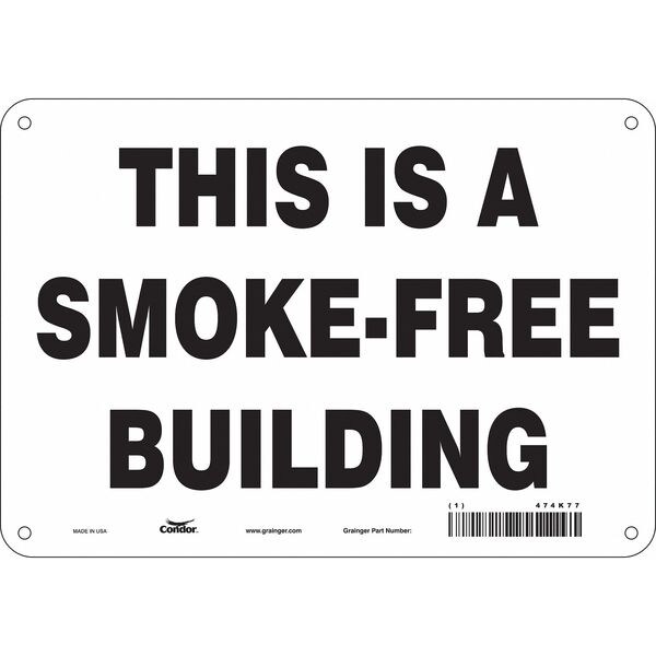 Safety Sign, Vertical Rectangle, Number of Printed Sides 1, English, Sign Format Other Format, Sign Legend This Is A Smoke-Free Building, Sign Legend Background Color White, Sign Legend Style Text