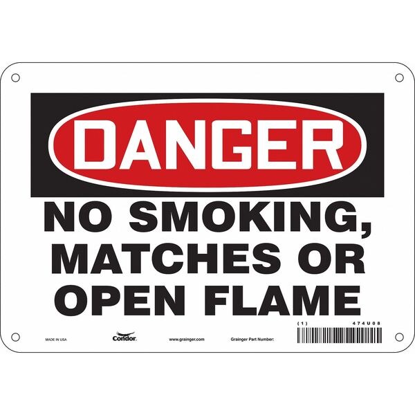 Safety Sign, Vertical Rectangle, Number of Printed Sides 1, English, Sign Format Traditional OSHA, Sign Legend No Smoking, Matches Or Open Flame, Sign Legend Background Color White, Sign Legend Style Text