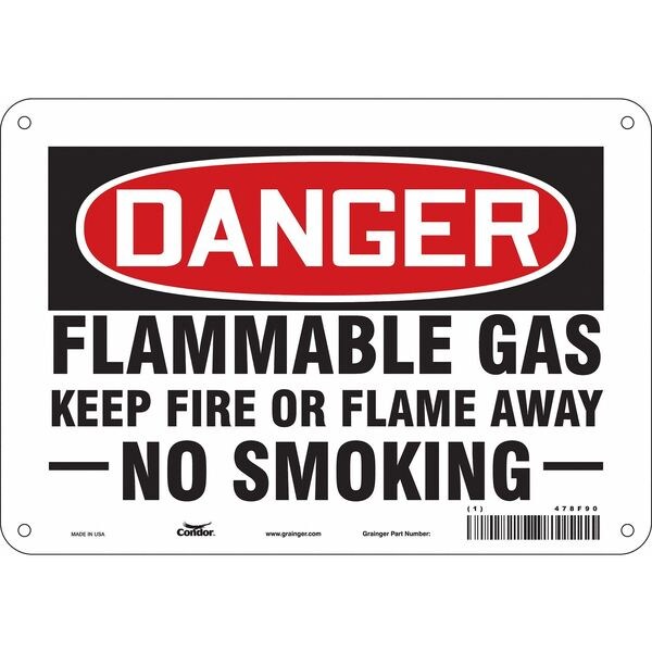 Safety Sign, Vertical Rectangle, Number of Printed Sides 1, English, Sign Format Traditional OSHA, Sign Legend Flammable Gas Keep Fire Or Flame Away No Smoking, Sign Legend Background Color White, Sign Legend Style Text
