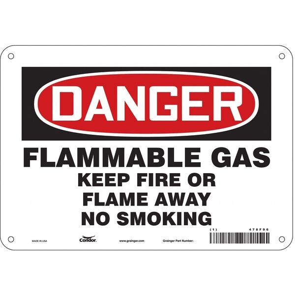 Safety Sign, Vertical Rectangle, Number of Printed Sides 1, English, Sign Format Traditional OSHA, Sign Legend Flammable Gas Keep Fire Or Flame Away No Smoking, Sign Legend Background Color White, Sign Legend Style Text