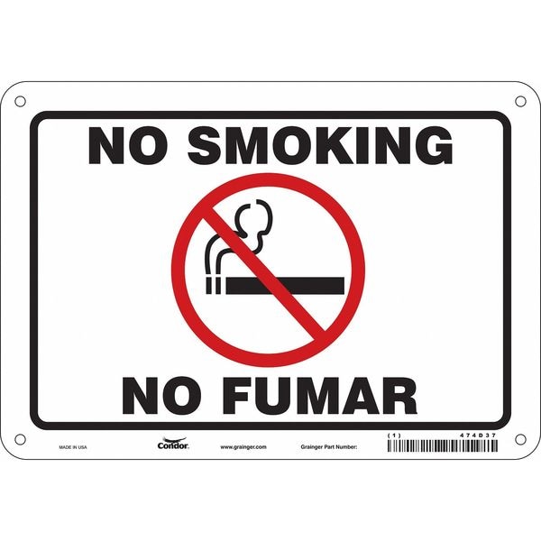 Safety Sign, Vertical Rectangle, Number of Printed Sides 1, English, Spanish, Sign Format Other Format, Sign Legend No Smoking/No Fumar, Sign Legend Background Color White, Sign Legend Style Symbol and Text