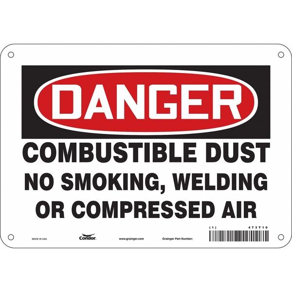 Safety Sign, Vertical Rectangle, Number of Printed Sides 1, English, Sign Format Traditional OSHA, Sign Legend Combustible Dust No Smoking, Welding Or Compressed Air, Sign Legend Background Color White, Sign Legend Style Text