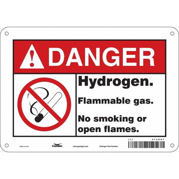 Safety Sign, Vertical Rectangle, Number of Printed Sides 1, English, Sign Format ANSI/OSHA Format, Sign Legend Hydrogen. Flammable Gas. No Smoking Or Open Flames., Sign Legend Background Color White, Sign Legend Style Symbol and Text