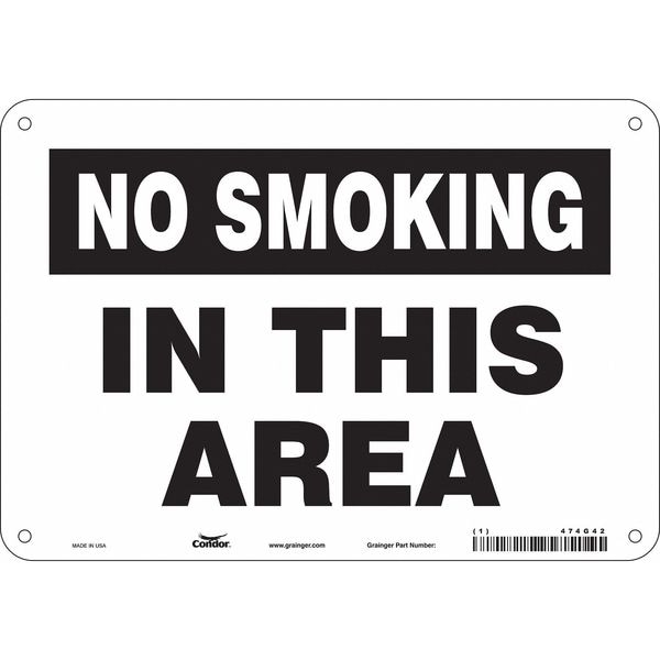 Safety Sign, Vertical Rectangle, Number of Printed Sides 1, English, Sign Format Other Format, Sign Legend No Smoking In This Area, Sign Legend Background Color Black, White, Sign Legend Style Text