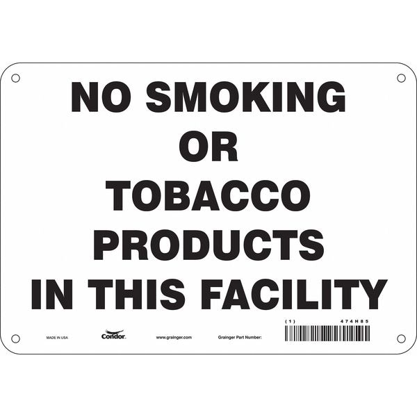 Safety Sign, Vertical Rectangle, Number of Printed Sides 1, English, Sign Format Other Format, Sign Legend No Smoking Or Tobacco Products In This Facility, Sign Legend Background Color White, Sign Legend Style Text