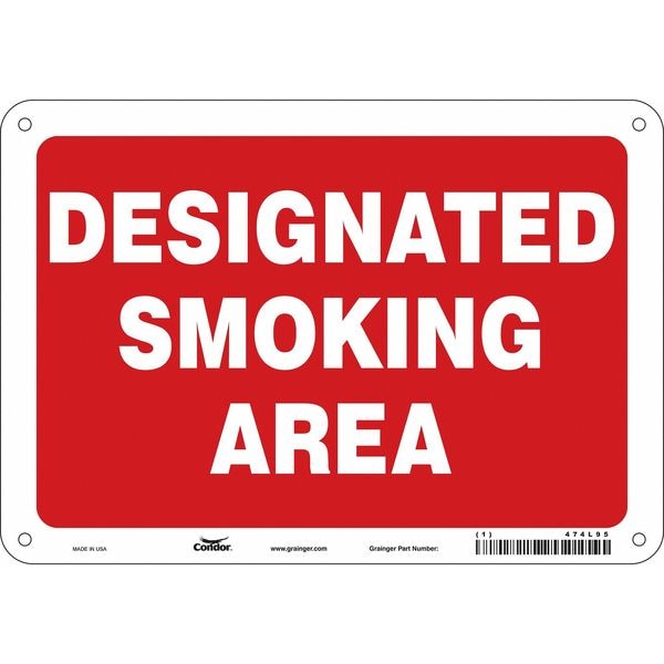 Safety Sign, Vertical Rectangle, Number of Printed Sides 1, English, Sign Format Other Format, Sign Legend Designated Smoking Area, Sign Legend Background Color Red, White, Sign Legend Style Text