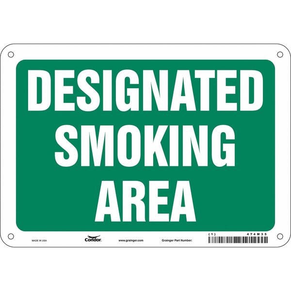 Safety Sign, Vertical Rectangle, Number of Printed Sides 1, English, Sign Format Other Format, Sign Legend Designated Smoking Area, Sign Legend Background Color Green, Sign Legend Style Text