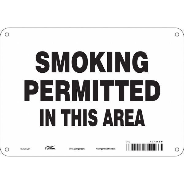 Safety Sign, Vertical Rectangle, Number of Printed Sides 1, English, Sign Format Other Format, Sign Legend Smoking Permitted In This Area, Sign Legend Background Color White, Sign Legend Style Text